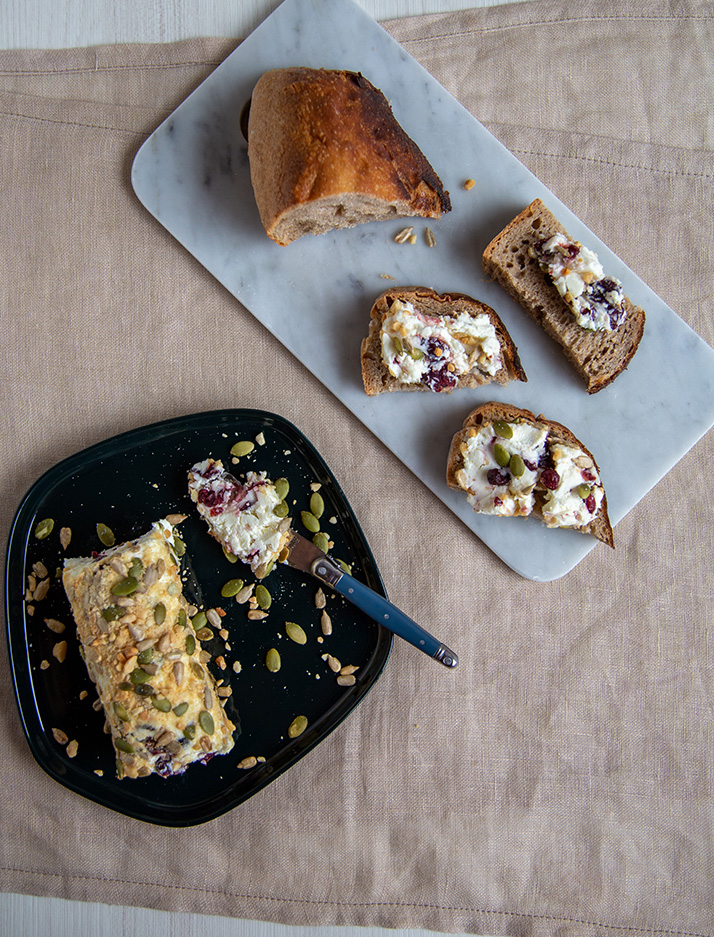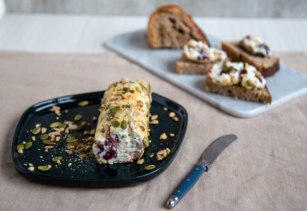 Buen sábado! Hoy queremos compartir contigo una preparación ideal para algún aperitivo de este fin de semana o cualquiera de las celebraciones que se nos vienen este fin de año ¿te animas a probarla?. Se trata de un rollo de queso con frutos secos & cranberries… el sabor del queso feta combina muy bien con lo dulce de los cranberries, se deja comer como dirían algunos 😉 y te lo digo yo, la Pilar, que no soy tan fan del queso feta como la Isidora que se lo come como si fuera pan!!! Como todas nuestras recetas, se trata de una preparación muy simple & flexible! si no te animas con el queso feta lo puedes reemplazar por queso azul o incluso usar sólo queso crema!