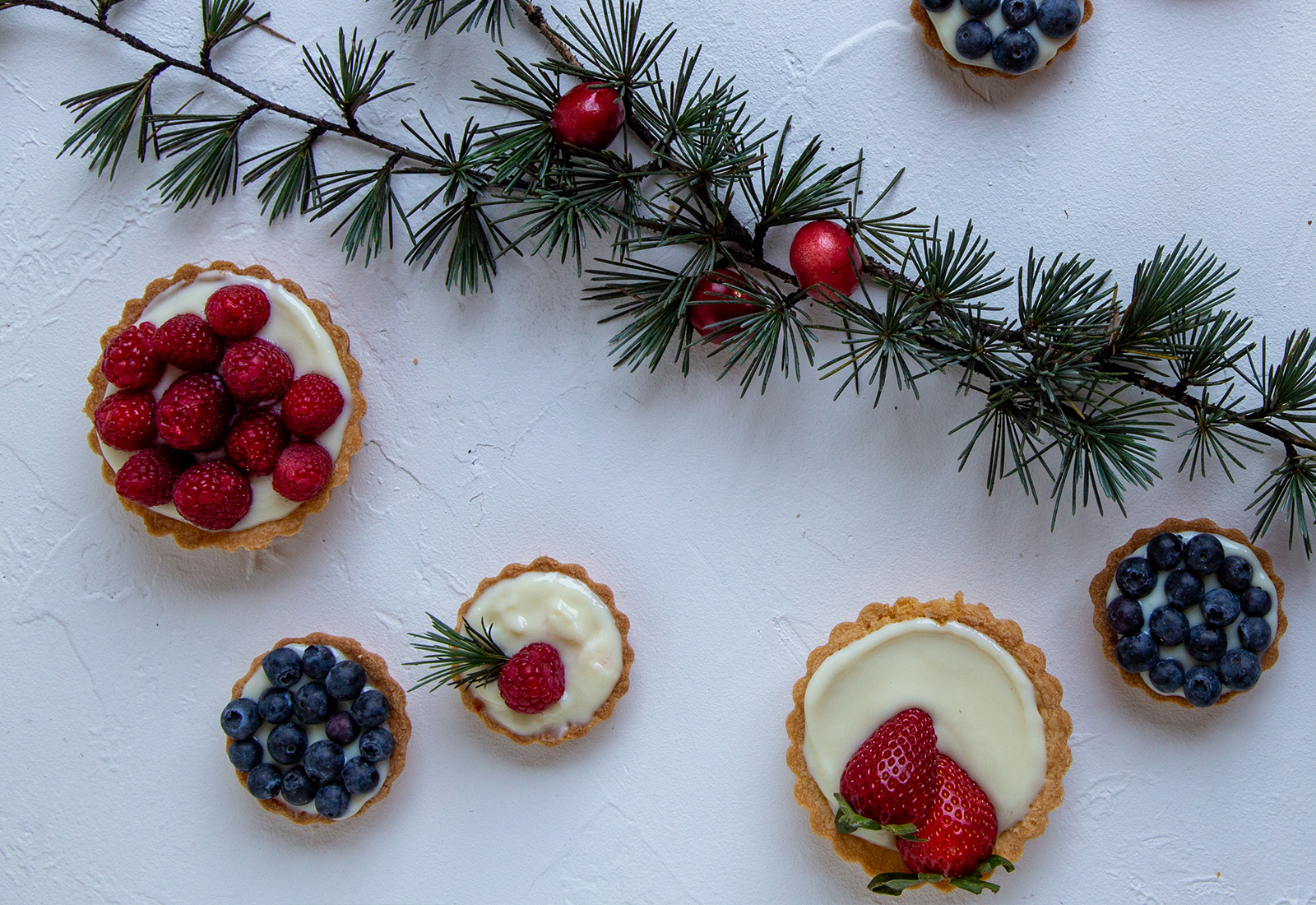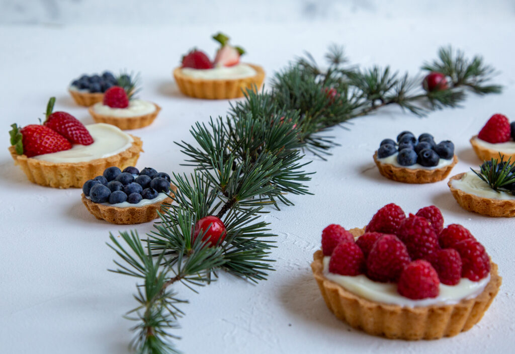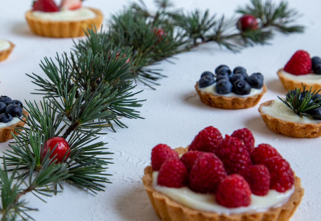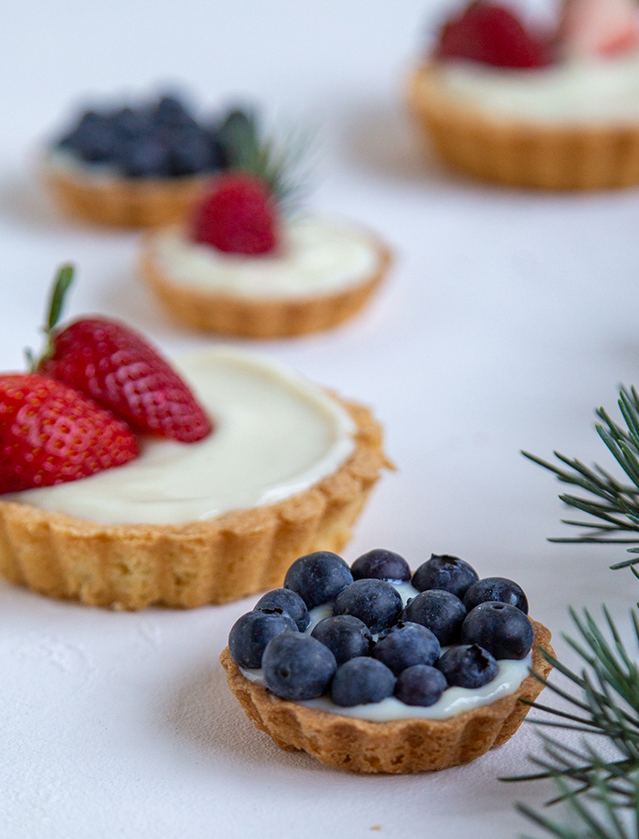 Los berries puedes ordenarlos de la manera que más te guste sobre las tartas, nosotras proponemos no hacerlas todas iguales, así le damos un look diferente & más atractivo a la mesa.